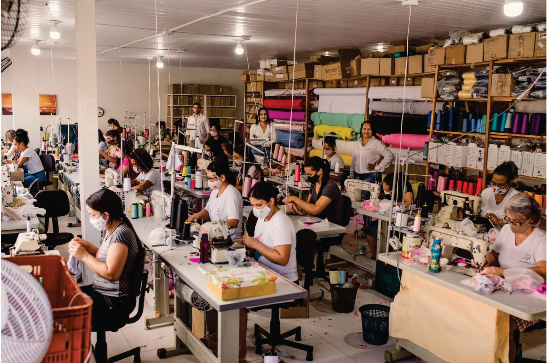 Ainda nos preocupamos com a parte social (empregamos 100% da mão de obra local) e com o meio ambiente (alguns tecidos das nossas coleções são feitos a partir de garrafas Pet recicladas, assim como o lacre e as etiquetas são feitas a partir de materiais descartáveis, além de doarmos todos os tecidos que sobram para entidades que fazem artesanatos de retalhos).